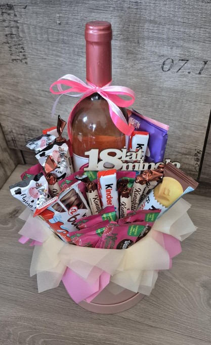 Box z winem i słodkościami to elegancki zestaw prezentowy, który doskonale sprawdzi się jako upominek na różne okazje.